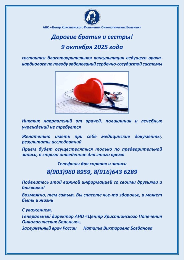 09.10.2025 года состоится благотворительная акция врача — кардиолога