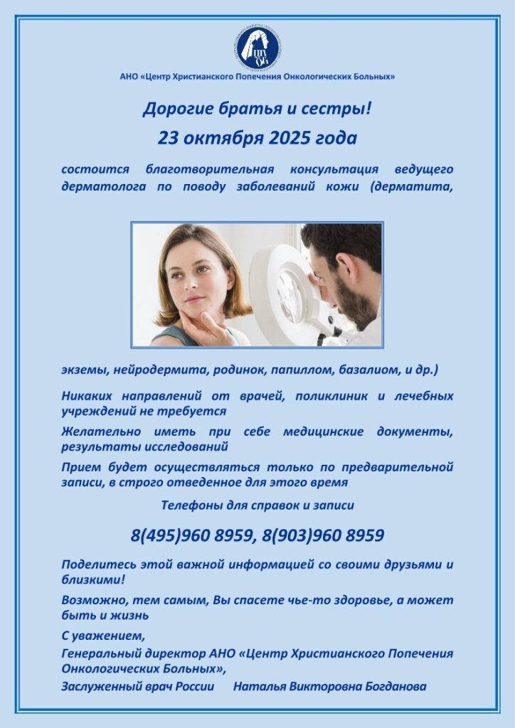 23.10.2025 года состоится благотворительная акция врача — дерматолога