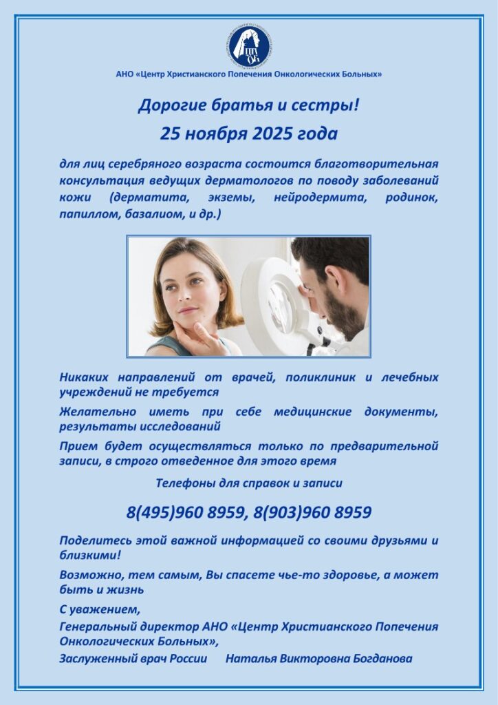 25 ноября 2025 года состоится благотворительная консультация врача — дерматолога