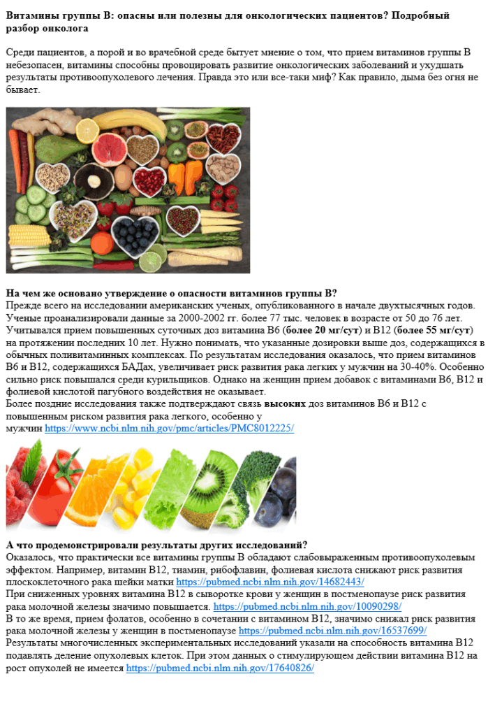 Витамины группы В: опасны или полезны для онкологических пациентов? Подробный разбор онколога